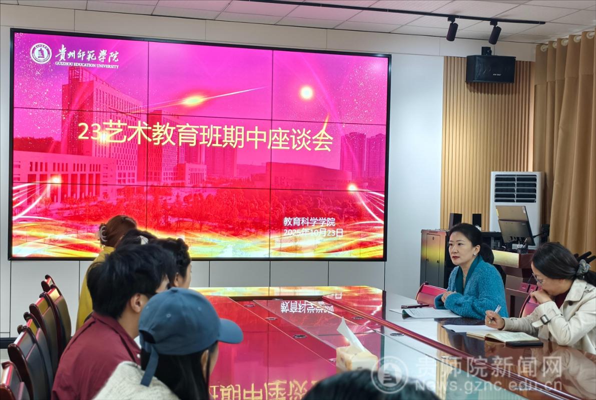 为了不断提高教学质量,及时、准确查找整改教学中存在的问题、了解学生学习与生活的动态,10月23日上午 ,在逸夫楼415教室,艺术教育专业召开2025-2026学年第一学期期中教学座谈会。来自艺术教育专业23级学生代表共15名同学参加了本次座谈会,座谈会由艺术教育系系主任马慧慧老师主持,教育科科学学院党委书记肖湘萍列席参加。