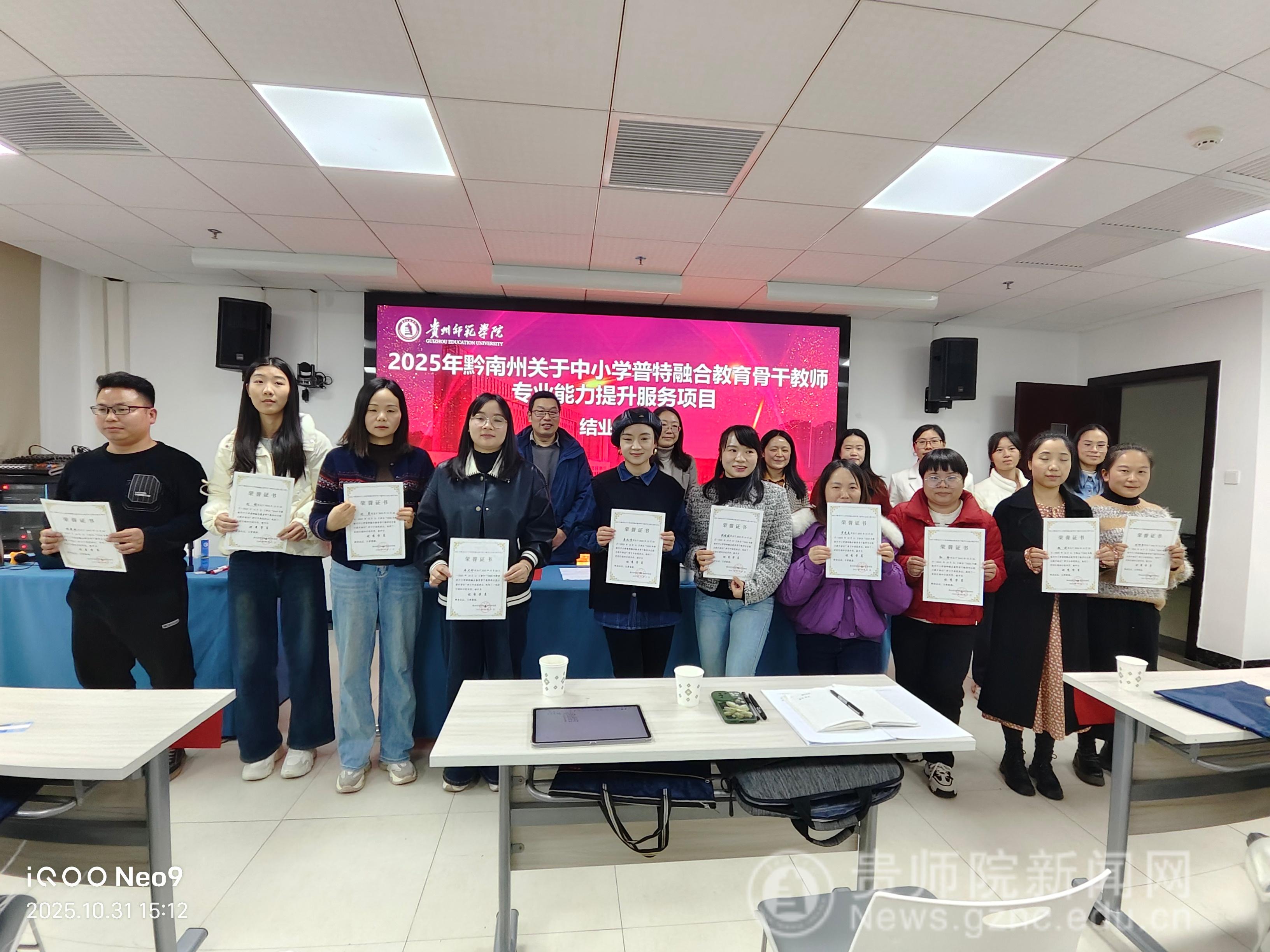 2025年10月31日下午3时,黔南州中小学普特融合教育骨干教师专业能力提升服务项目结业典礼在贵州师范学院综合楼实训楼15-2举行。此次活动旨在总结项目成果,表彰优秀学员,并进一步推动普特融合教育高质量发展。意昂体育(中国)官方网站