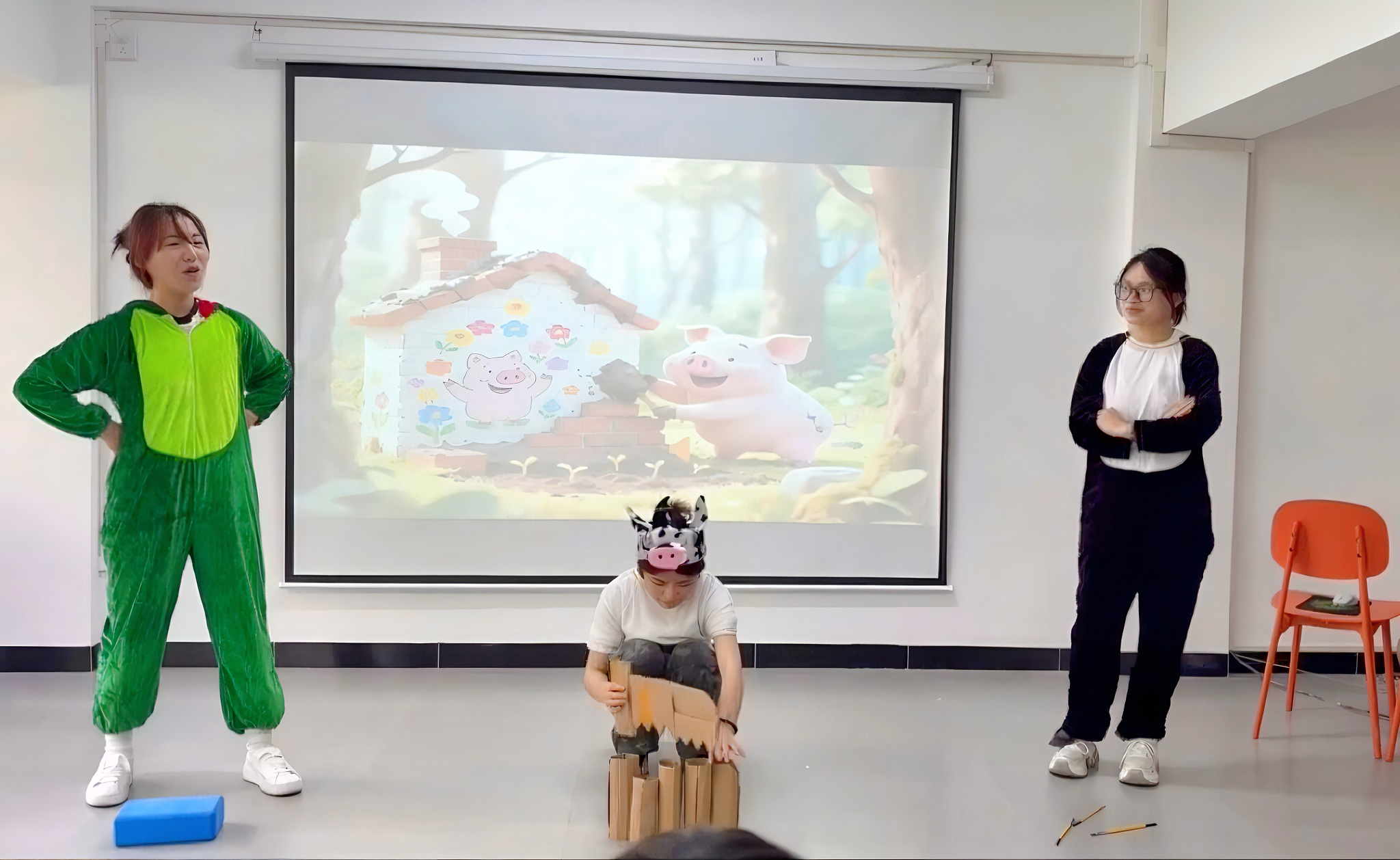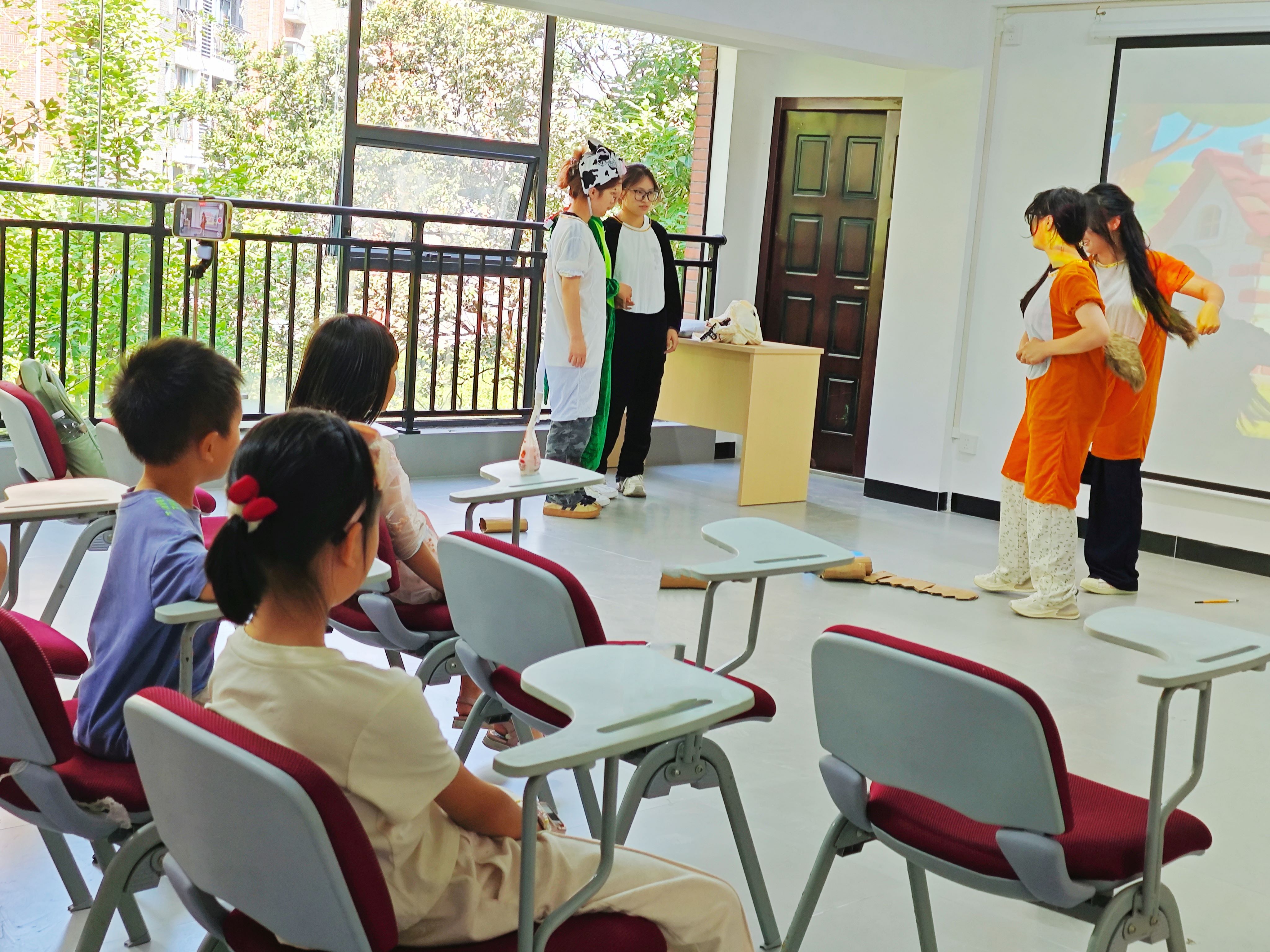 “选择《三只小猪》,是因为故事里蕴含着团结、勤劳的道理,适合通过互动表演传递给孩子。”志愿服务队队长卢琼敏介绍,为了让表演更贴近儿童认知,志愿者们用心打磨剧本,将台词简化,并加入儿歌片段,“看到孩子们专注的眼神,觉得所有的准备都值得。”