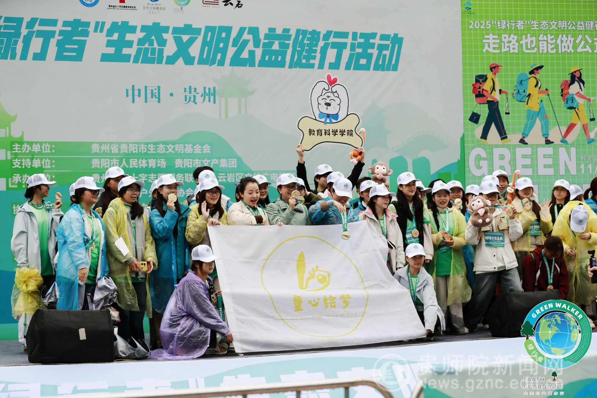 童心绘梦艺术公益社团成员代表在学院党委书记肖湘萍、指导教师张源、主懿芹、吴俊华等的带领下,齐聚黔灵山公园南门,共同参与“2025年‘绿行者’生态文明公益健行活动”。